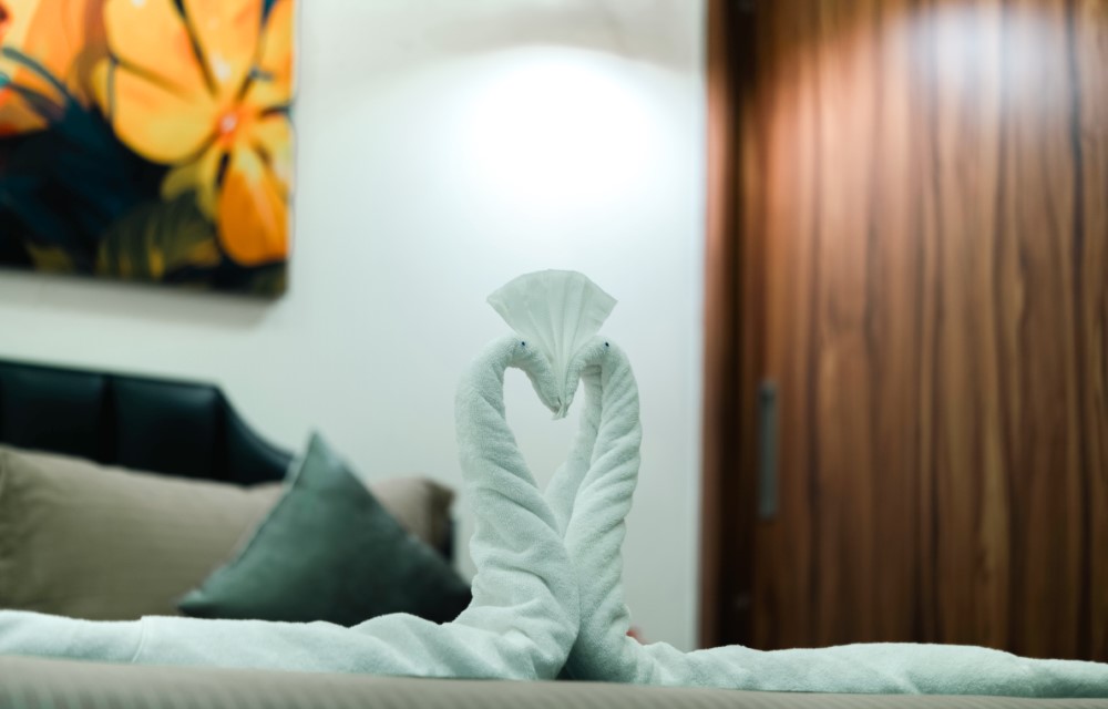 The Loft Studio offers premium bedding, elegant décor, and thoughtfully placed lighting to create a warm and relaxing ambiance. With essential amenities such as high-speed Wi-Fi, a work desk, air-conditioning, and a clean, well-maintained bathroom, this room is ideal for business travelers, couples, and long-stay guests.